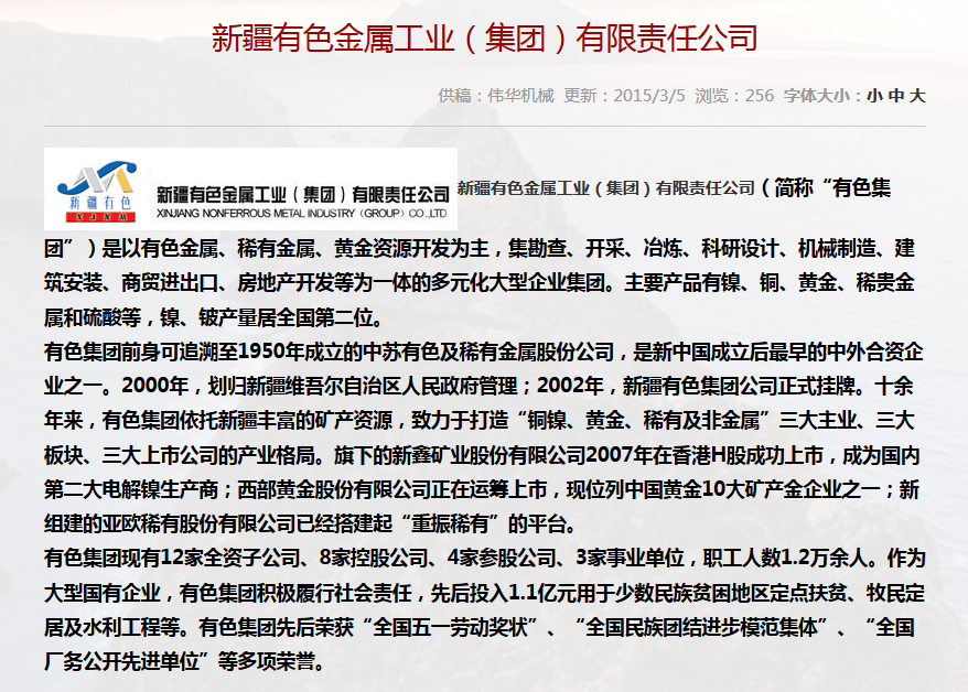 • 合作單位:新疆有色金屬工業(yè)(集團)有限責(zé)任公