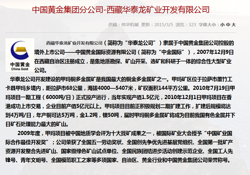 • 合作單位:中國黃金集團分公司-西藏華泰龍礦業(yè)開